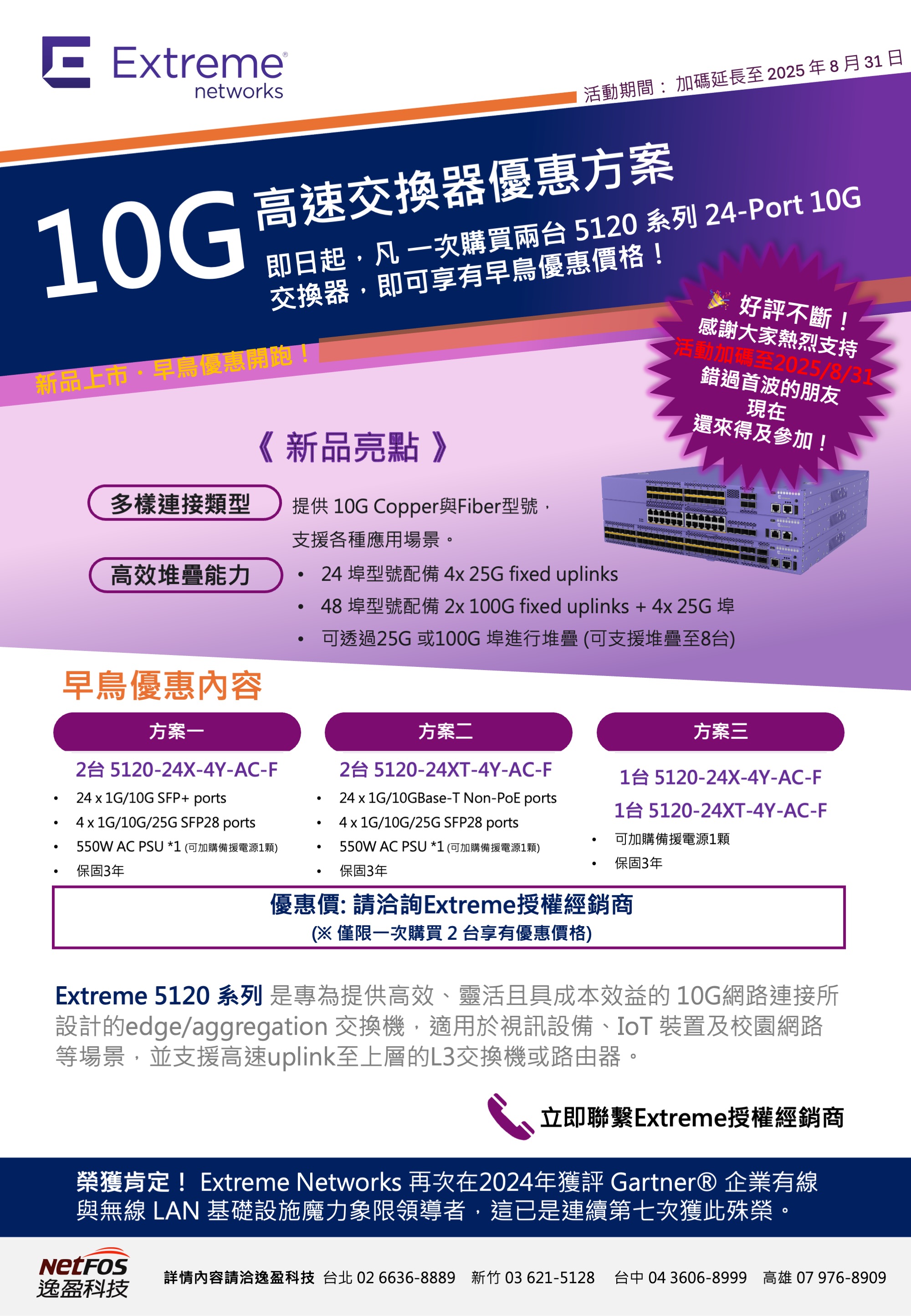 【限時加碼】Extreme 5120 系列10G邊緣交換機,活動延長至 8/31!