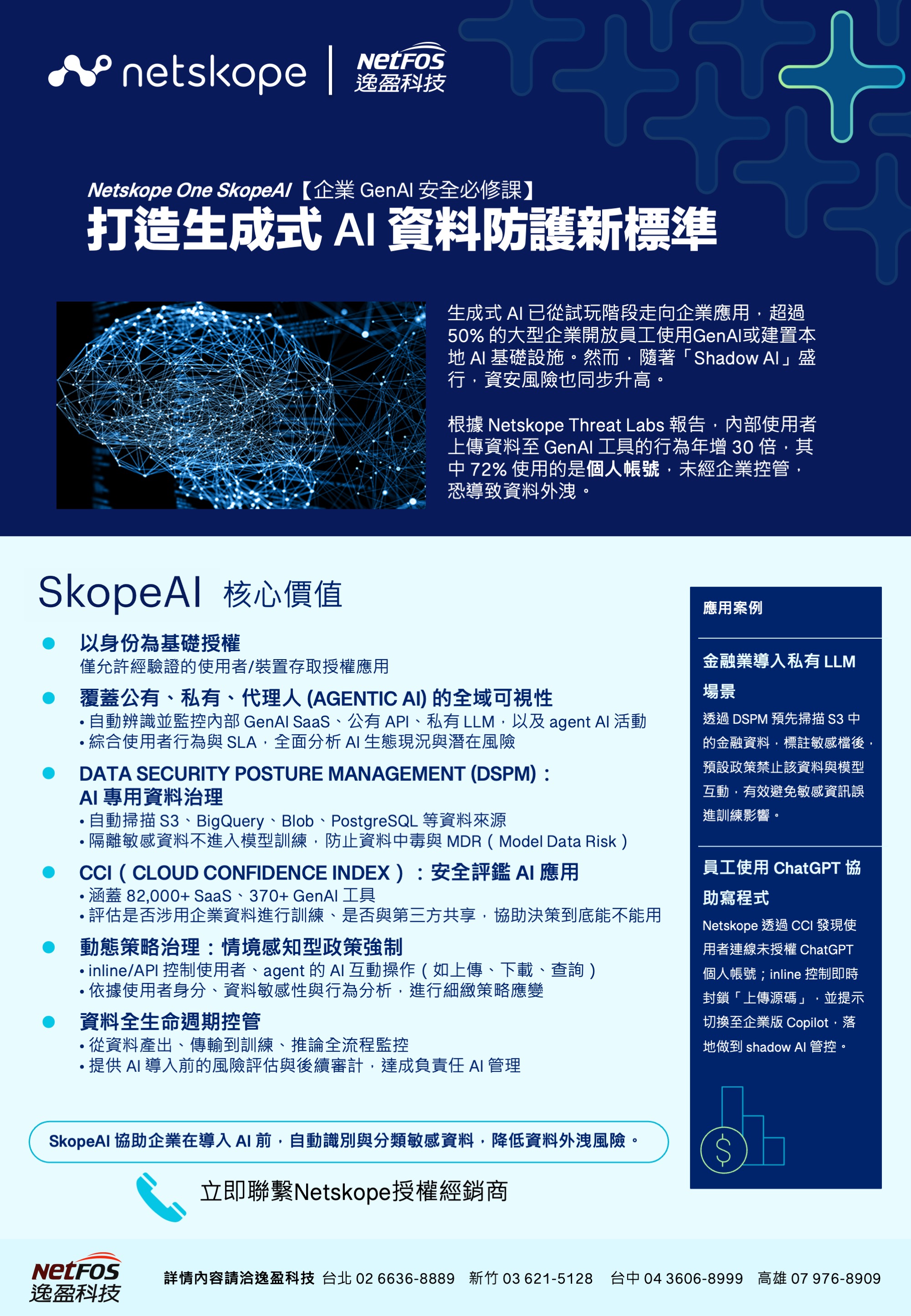 Netskope SkopeAI:打造生成式 AI 資料防護新標準!