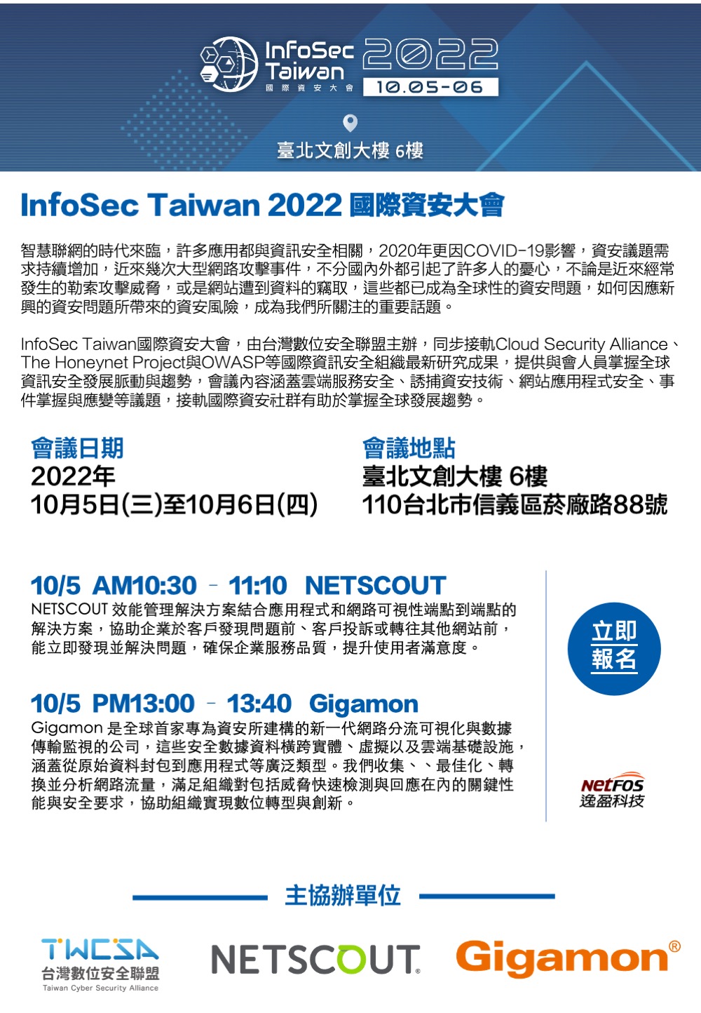 InfoSec Taiwan 2022國際資安大會(TWCSA 主辦)- NETSCOUT, Gigamon