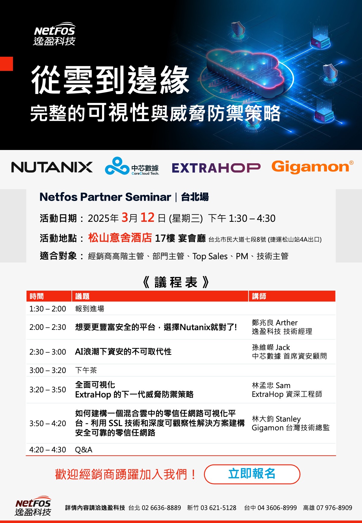 3/12 - 逸盈科技 - 經銷商Product Update - Nutanix / ExtraHop / Gigamon / 中芯數據