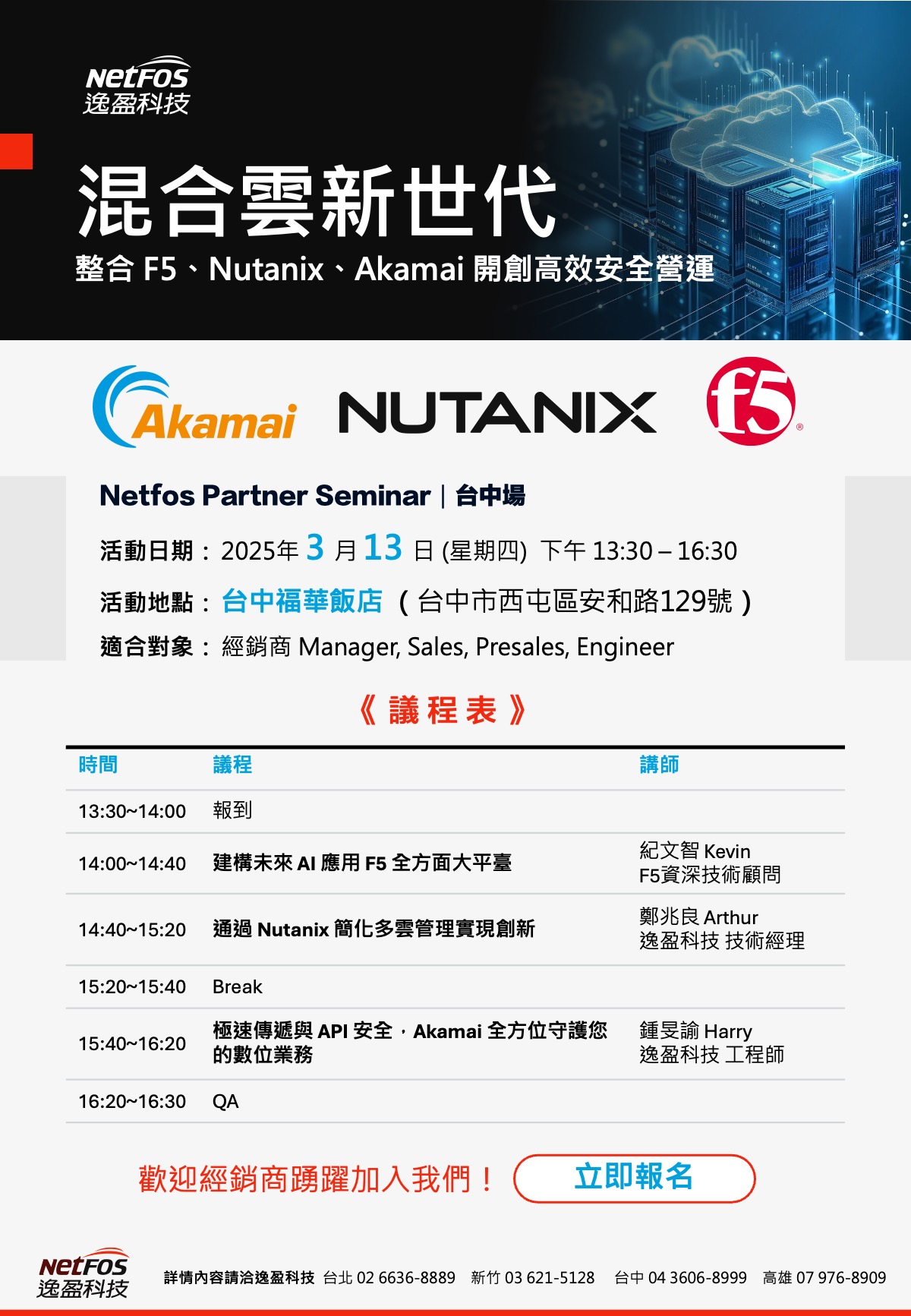 3/13 - 逸盈科技 - 經銷商Product Update - Akamai / Nutanix / F5