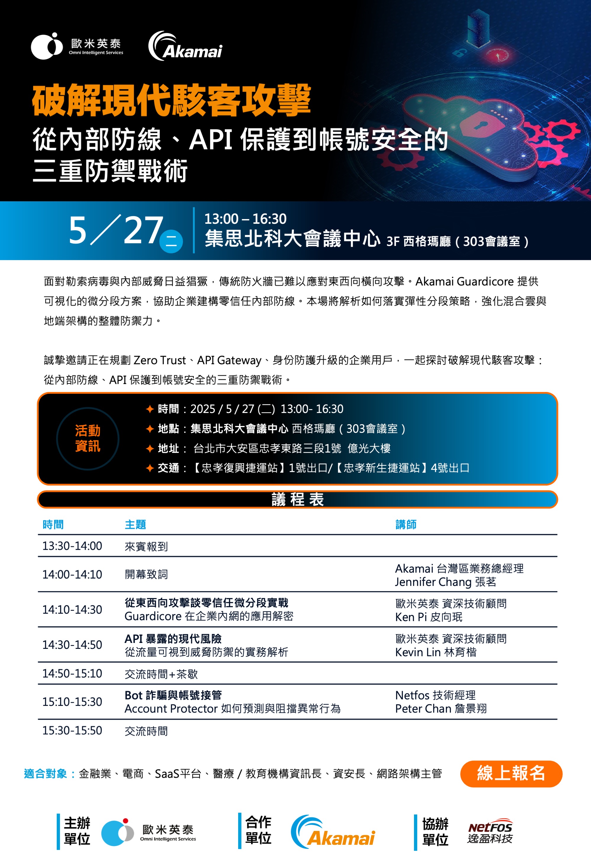 5/27 - Akamai 破解現代駭客攻擊研討會