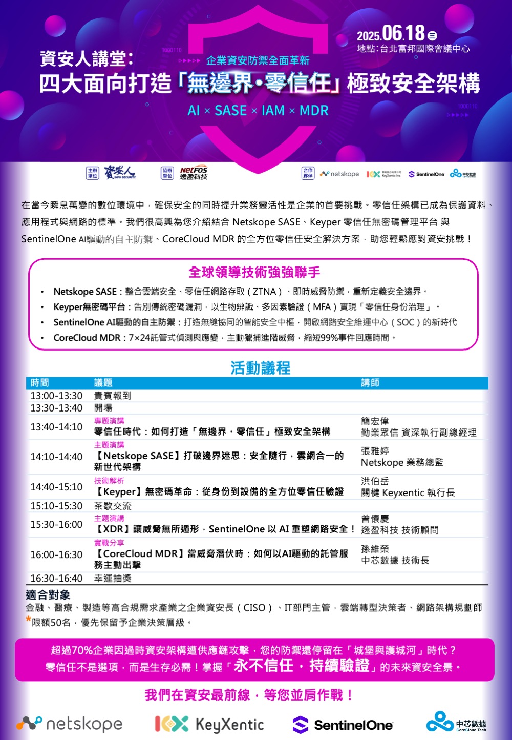 6/18 - Netskope X Keyper X SentinelOne X 中芯數據聯合研討會