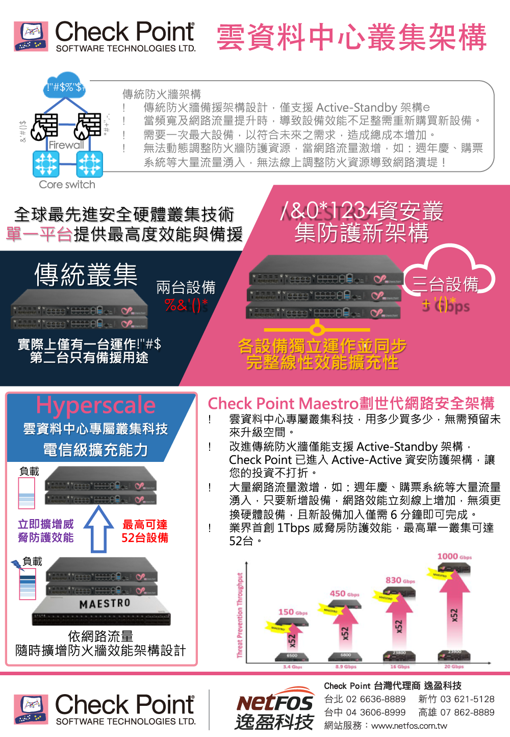 Check Point 雲資料中⼼叢集架構 MAESTRO