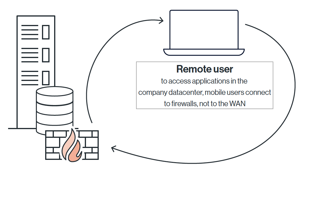 遠端使用者需要對資料中心託管的應用程式進行部分或是全網連線需求。傳統上,他們透過在遠程設備上啟動VPN應用程式連線至VPN專屬設備或是資料中心防火牆應用程式。