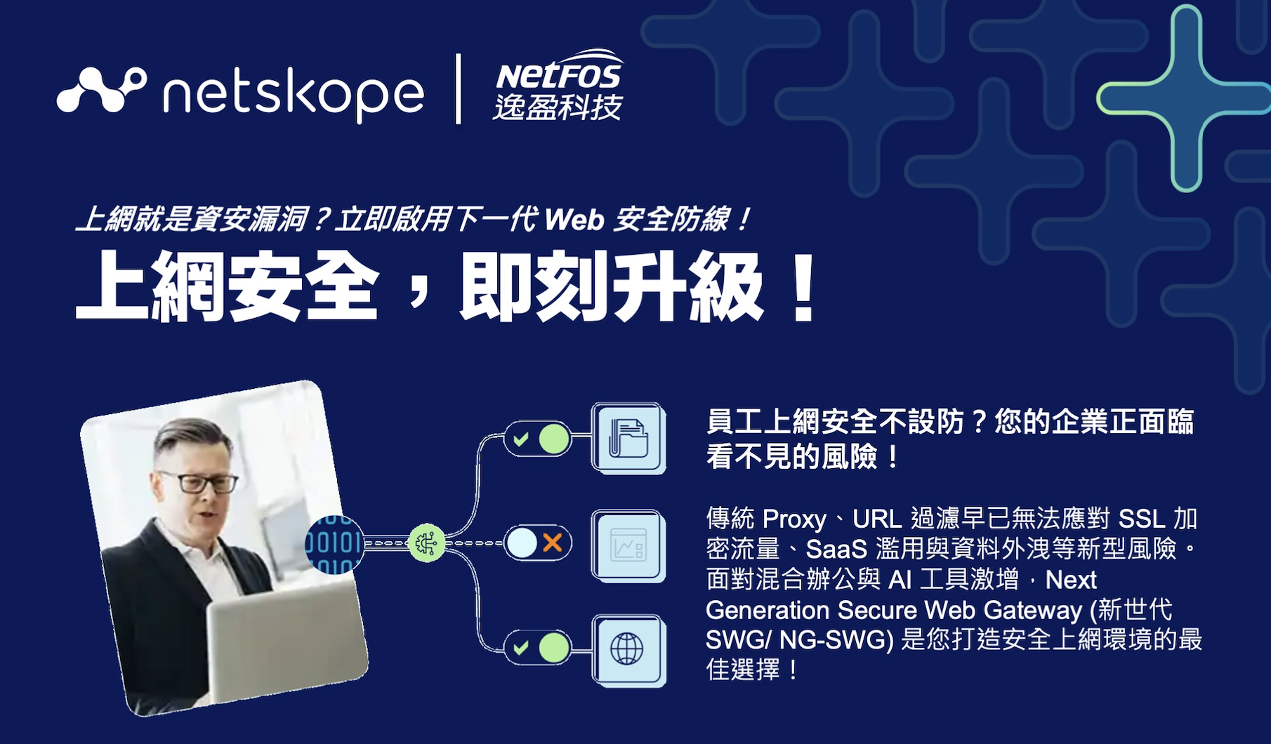 在混合辦公與 AI 工具激增的時代,傳統網路防護已無法應對 SSL 加密流量、SaaS 濫用與資料外洩等新型風險。Netskope Next Gen SWG 重新定義企業上網安全,守護每一次連線、每一筆資料,讓風險無所遁形!